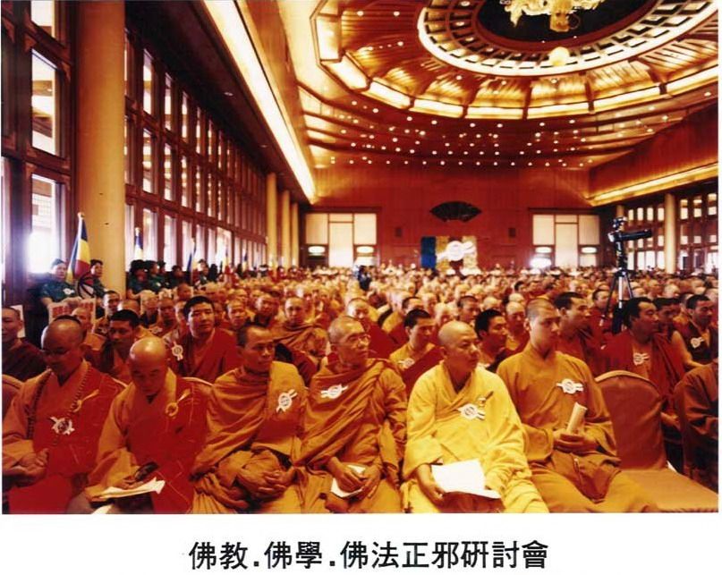 聯合國際世界佛教總部在臺灣舉行了世紀性全世界最大規模的「佛教佛學佛法正邪研討會」,參加會議的有日本、泰國、尼泊爾、美國、加拿大、法國、韓國、斯里蘭卡、緬甸、不丹等二十八個國家的活佛、高僧、大德居士共兩千餘人。聯合國際佛教會、國際佛教僧尼總會、國際金剛菩提總會、美國佛教協會、世界佛教僧伽會、美國密宗總會、加拿大密宗總會等均派負責人出席大會並發言。